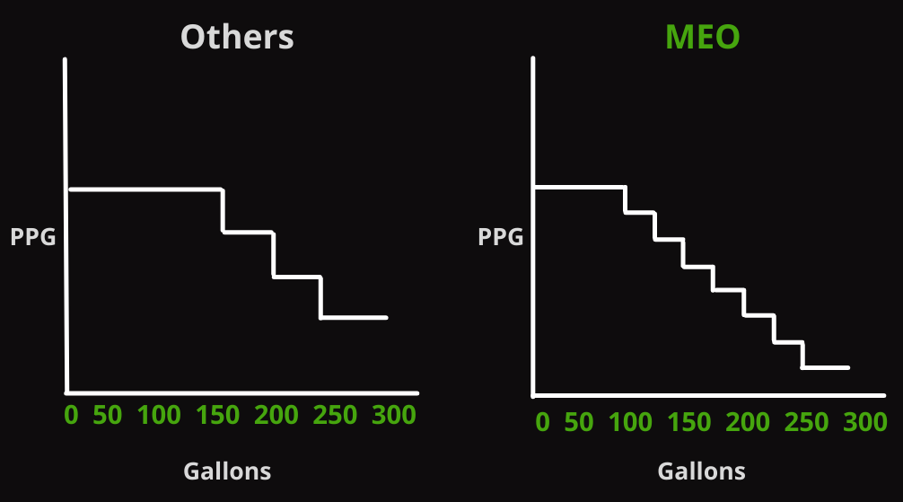 At Energy Express, every gallon after the first 100 is discounted equally. It’s simple, consistent, and fair—so you save more without worrying about minimums.
